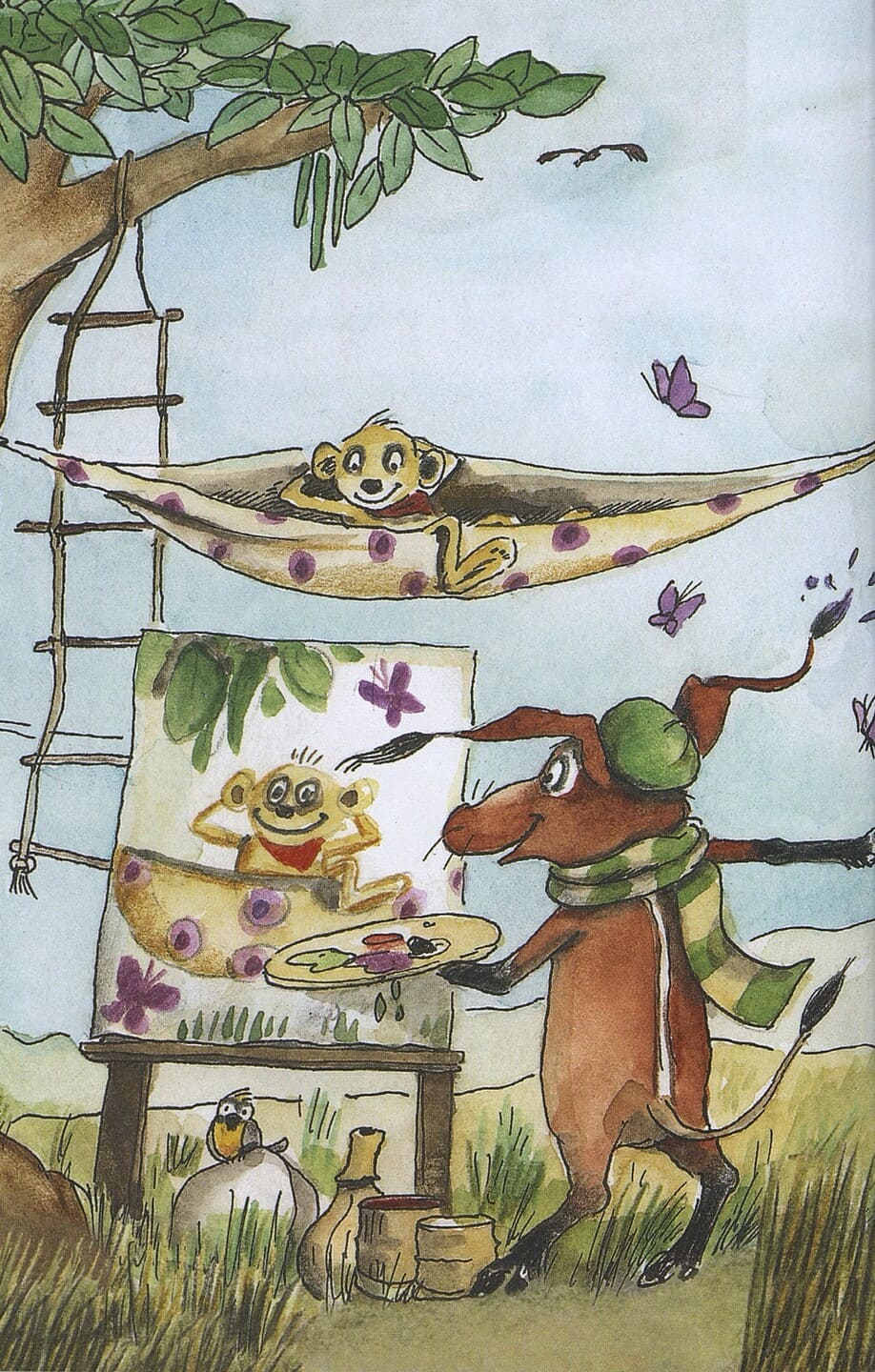 Книга Юлии Бёме проиллюстрирована художницей Юлией Гинсбах, яркие и живые рисунки которой прекрасно передают весёлый и озорной характер героев. Читателям будет интересно слушать рассказы о невероятных приключениях крошечного суриката и отважного поросёнка и знакомиться с другими обитателями саванны.