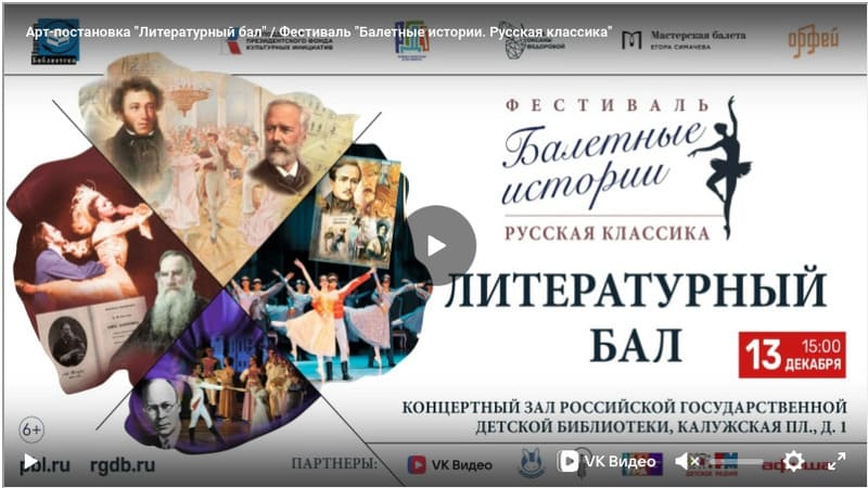 Онлайн-трансляция всех постановок Фестиваля «Балетные истории. Русская классика» доступна в социальных сетях РГДБ, а также на федеральном портале культура.рф.